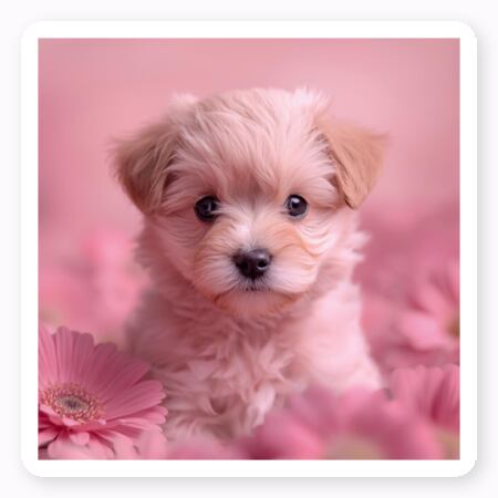 心を癒やすかわいらしいデザインの「子犬とピンクのガーベラ ステッカー」で、あなたの空間に心温まる彩りをプラスしてみませんか?